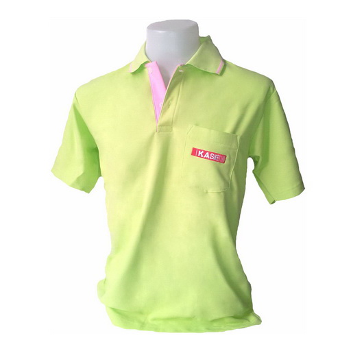 ปกเสื้อสีเขียวขลิบสีชมพู